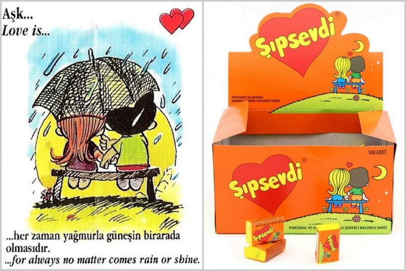 Так причем же тут турецкая жевательная резинка? Турецкие художники вдохновились рисунками Билла и с 1970-х годов стали создавать вкладыши для жвачки Şipsevdi, которую выпускала стамбульская компания Kent Gıda. Правда, турецкие художники доработали карикатуры Ким и Билла: у героев комиксов появилась одежда, а сами они стали цветными.