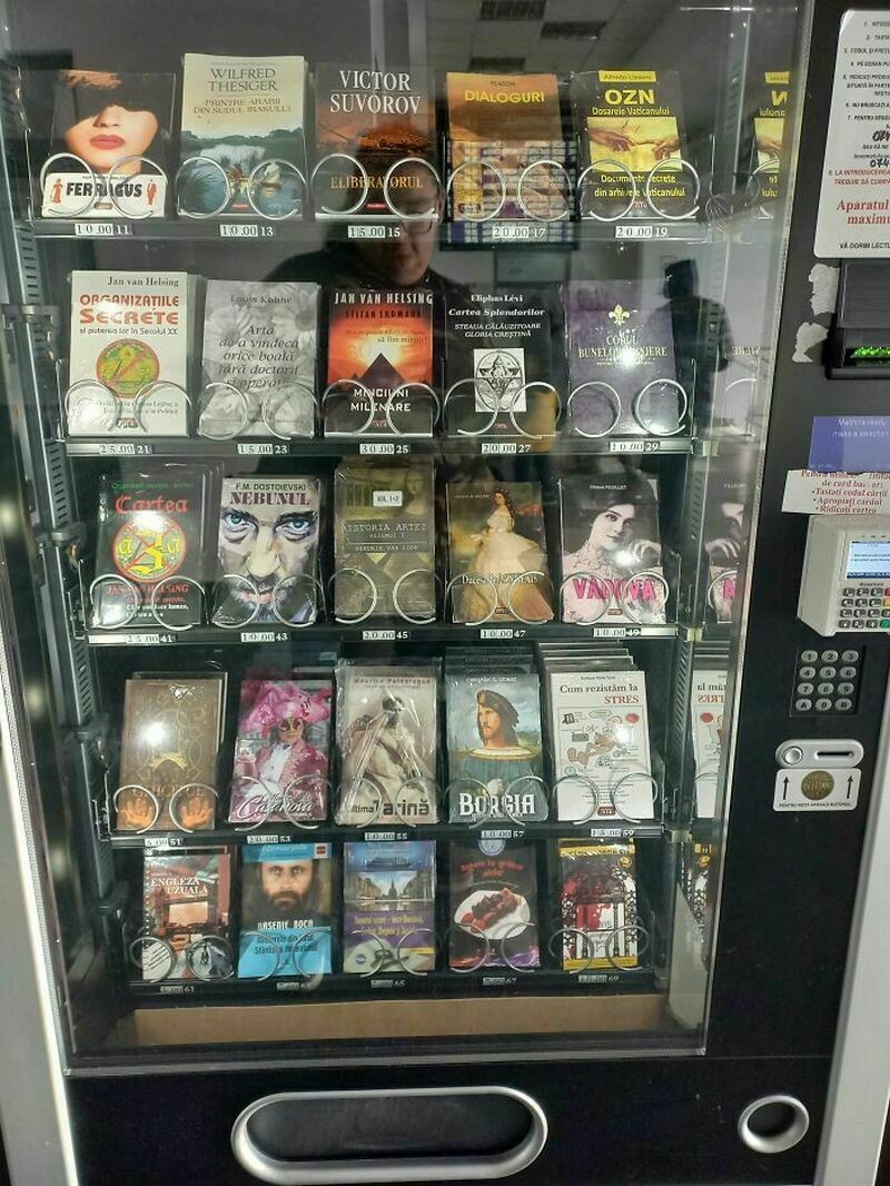 Автомат по продаже книг, который стоит на железнодорожном вокзале Румынии