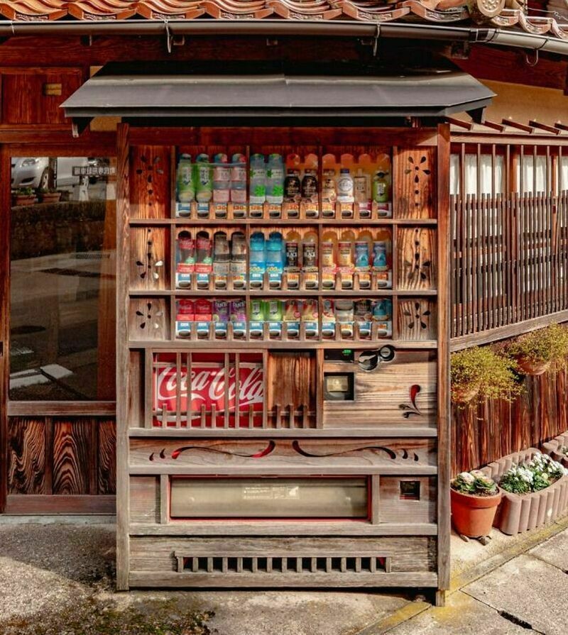 Автомат в японском лесу отлично вписался в окружающую среду