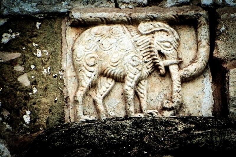 Помните крыловское: «По улицам слона водили...»? По столичным улицам действительно водили слонов в качестве развлечения, а первый слон на Руси появился у Ивана Грозного. Но о слонах на Руси узнали гораздо раньше: на одном из древнерусских храмов сохранился рисунок слона. Правда, выглядит он весьма странно: у него большие уши, как у зайца, а ноги похожи на лапы рыси или тигра, с большими когтями.