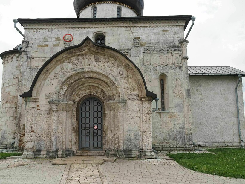 Этот барельеф украшает Георгиевский собор в Юрьеве-Польском (Владимирская область), но отыскать его там довольно сложно среди других изображений.