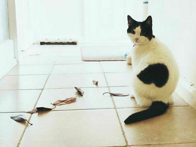 Кошка каждое утро выкладывает листы возле дверей спальни: она отбирает только красные и коричневые листья