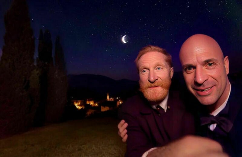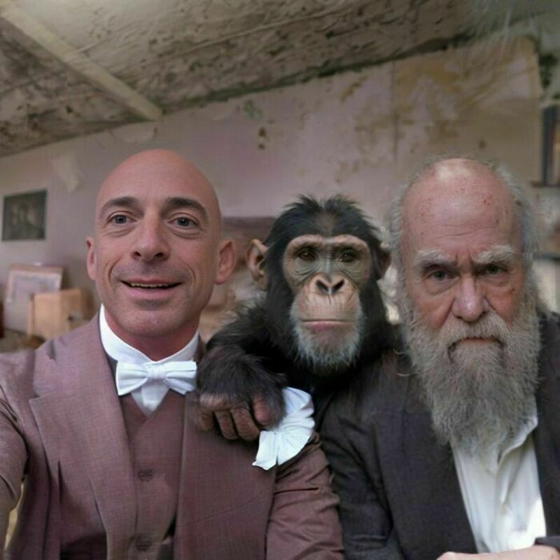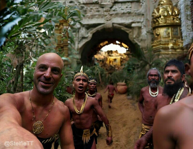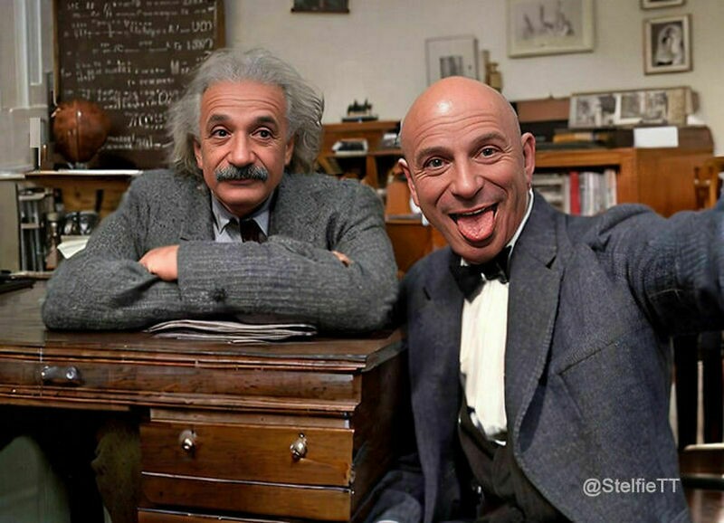 Наверняка многие из нас мечтали о путешествиях во времени и встречах с историческими деятелями. Кое у кого это действительно получилось — 41-летний мужчина по имени Стелфи (Stelfie) регулярно отправляется в прошлое. На самом деле он даже не настоящий человек, а лишь выдумка одного цифрового художника, который пожелал остаться безымянным создателем. Единственное, что известно о художнике: Стелфи — это его полное alter ego. Так, Стелфи абсолютно лысый, а художник — с черными волосами и густой бородой. Стелфи — это выдуманный персонаж, который перемещается в прошлом с помощью программ искусственного интеллекта и Photoshop. Делает он это ради одного — собрать потрясные фото с героями другого времени.
