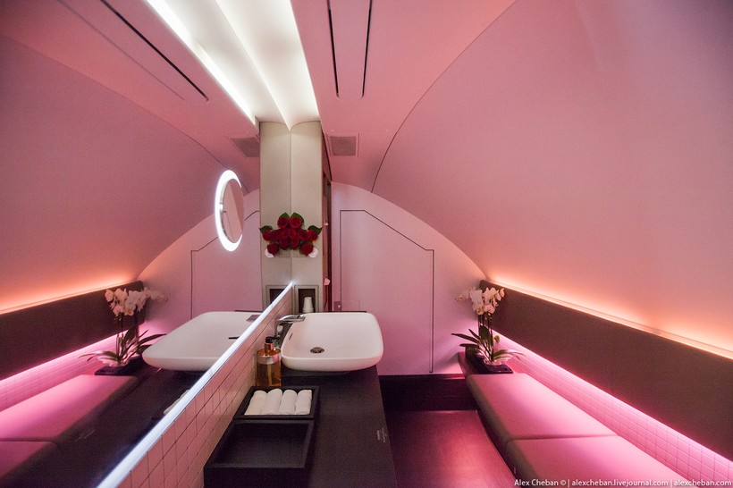Так выглядит туалет в первом и бизнес-классе. Здесь нет никакого ненужного душа. Нужно принять душ? Для этого есть arrival lounge в аэропорту. Это будет однозначно комфортнее и удобнее, чем ограниченный объем воды на борту самолета. Душ на борту Эмирейтс — классный маркетинговый финт, но не более.