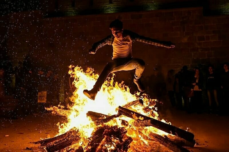 В Иране перед Новрузом (днем начала нового года по астрономическому солнечному календарю) проводится праздник Чахаршанбе-Сури. Он восходит к доисламским временам, и отмечают его с реальным огнем прямо на улицах. Возле домов жгут костры, а участники праздника прыгают через пламя.