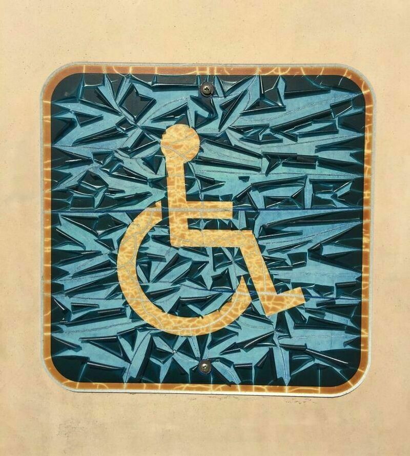 Краска потрескалась на солнце, и знак стал похож на мозаичный узор