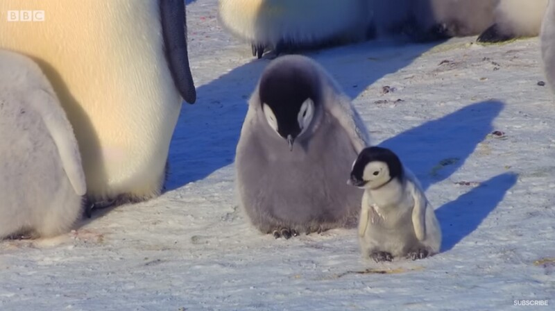 Однако не все птенцы вылупляются одновременно, и тем, кто появился на свет позже, гораздо сложнее приспособиться к жизни во льдах. Такие пингвинята похожи на маленьких интровертов: они не хотят общаться с другими малышами. Однако влиться в колонию пингвинов и начать посещать «детский сад» — это главный залог выживания среди детенышей. Иногда самки буквально подталкивают своих птенцов к компании других детей, ведь их малышам нужно научиться жить в группе. На видео как раз история такого пингвиненка: он вылупился позже всех и пока не готов покинуть теплую мамину сумку.