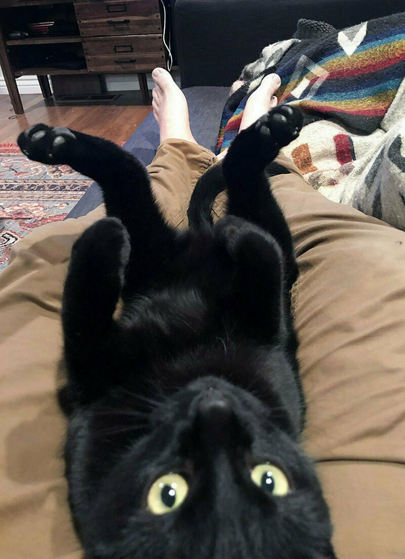 Кот из приюта впервые забрался к своему новому хозяину на колени