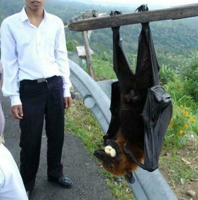 Правда, ацеродон не настолько огромный, каким выглядит на снимке, ведь фотографии часто дело в перспективе. Но если вспомнить привычных летучих мышей, то ацеродон действительно впечатляет своими размерами: размах его крыльев почти 1,7 метра. Живут эти гиганты на Филиппинах, они считаются местными эндемиками и находятся под угрозой исчезновения. В XIX веке этот вид описали впервые, разделив его на три подвида. Тогда на архипелаге проживало около 100 тысяч мышей. В наши дни их численность сократилась примерно в десять раз, а один подвид уже вымер.