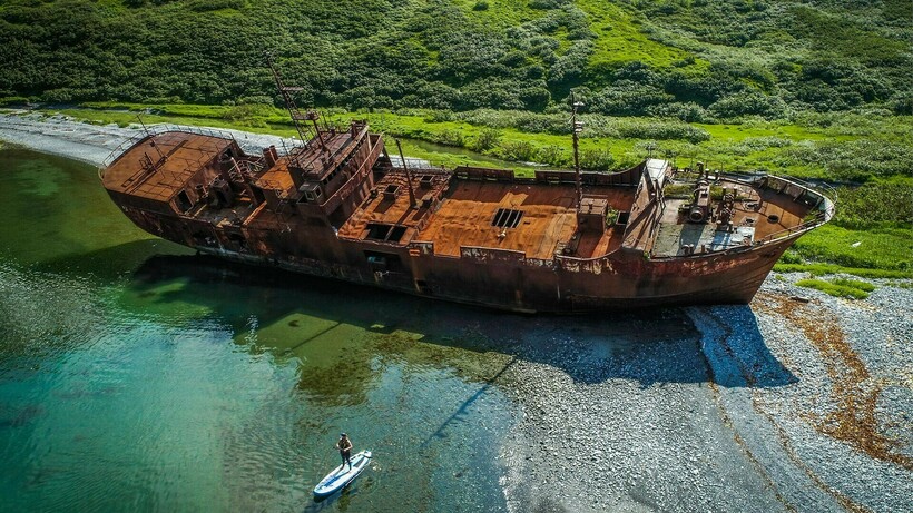 Китобойная шхуна, выброшенная в 1980-х годах на берег бухты Моржовой на Камчатке