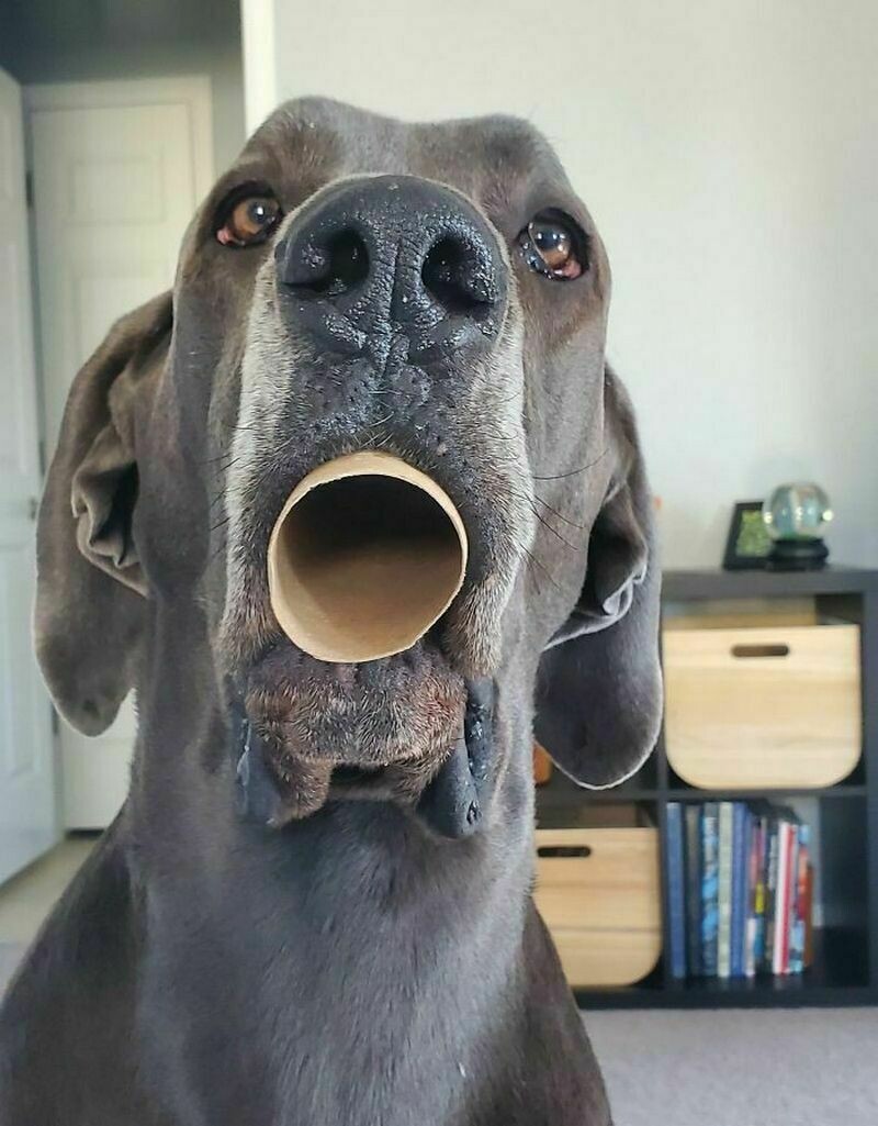 Хозяин дал своему псу поиграть с втулкой, а он решил через нее подышать