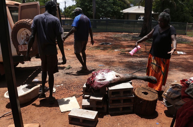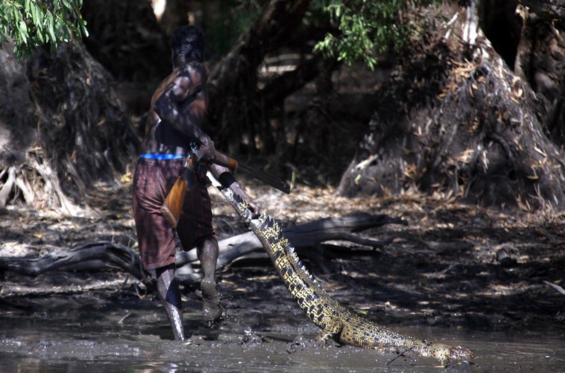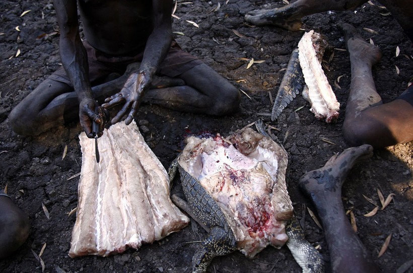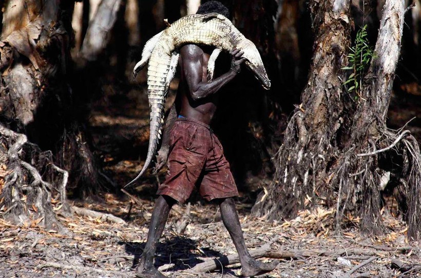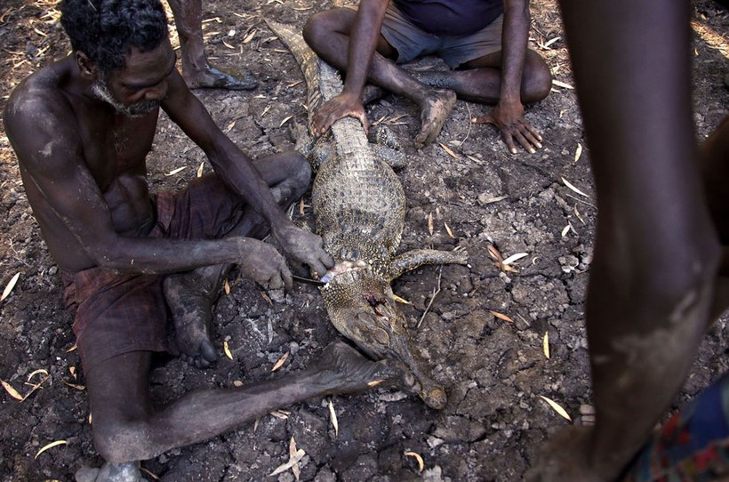 Самая тяжелая часть крокодила — его кожа. Так как продавать убитых рептилий аборигенам запрещено, тащить представляющую для нас ценность кожу не имеет смысла. С собой жители резервации забирают только мясо