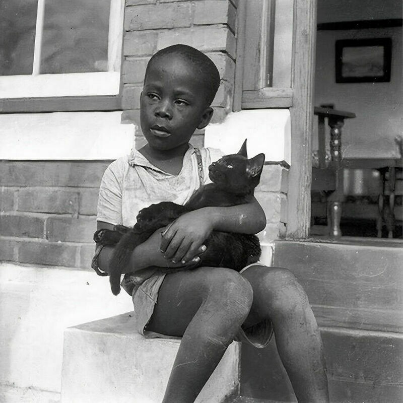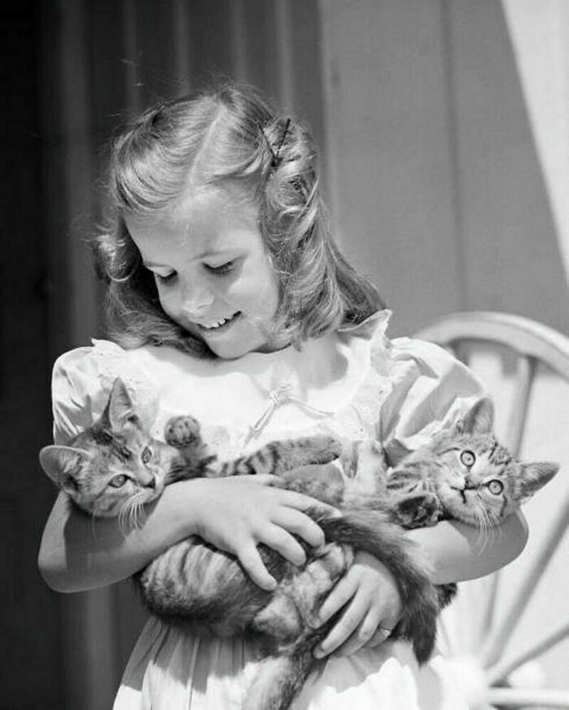 Маленькая жительница Нью-Йорка с кошечкой на руках, середина ХХ века