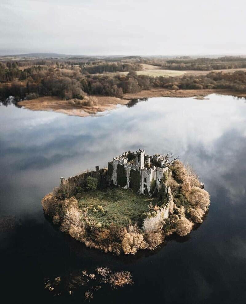 Руины замка Макдермотт на островке посреди реки в Ирландии