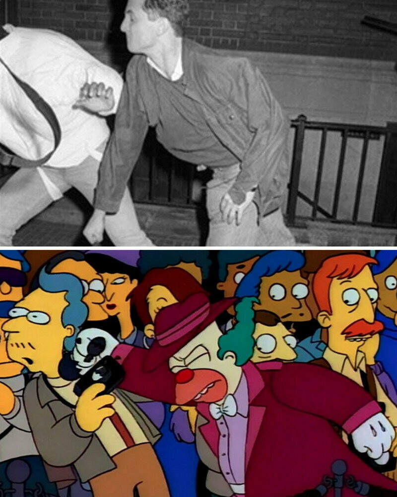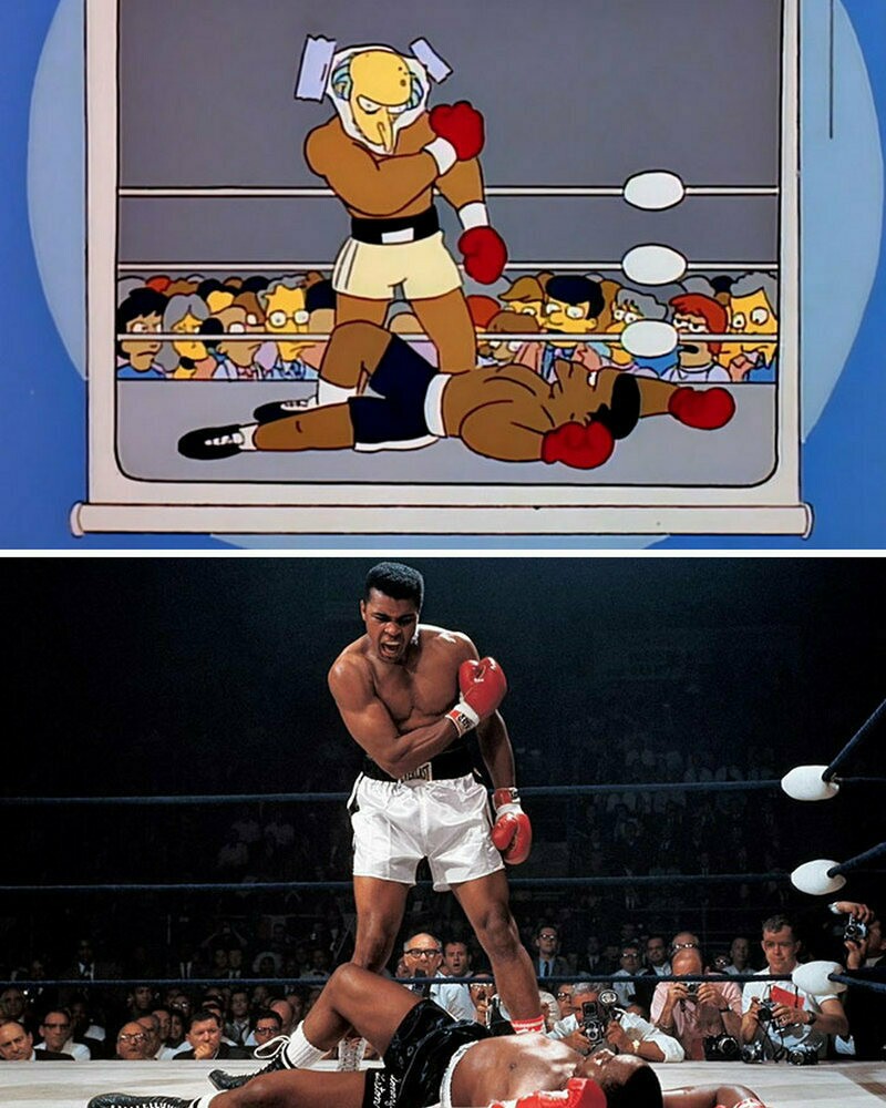 «Симпсоны» выходят больше тридцати лет, и на протяжении всего времени они полюбились зрителю за юмористический подход ко всем аспектам жизни. Мультсериал умело высмеивает человеческие пороки, знаменитых людей, популярную культуру, во многих эпизодах есть отсылки к искусству и известным историческим событиям. Найти их не так-то просто, и заметить их могут только настоящие фанаты «Симпсонов»: зачастую отсылка длится всего несколько секунд, и далеко не всегда понятна. Предлагаем вам посмотреть на 10 известных исторических моментов, которые воссоздали создатели мультфильма.