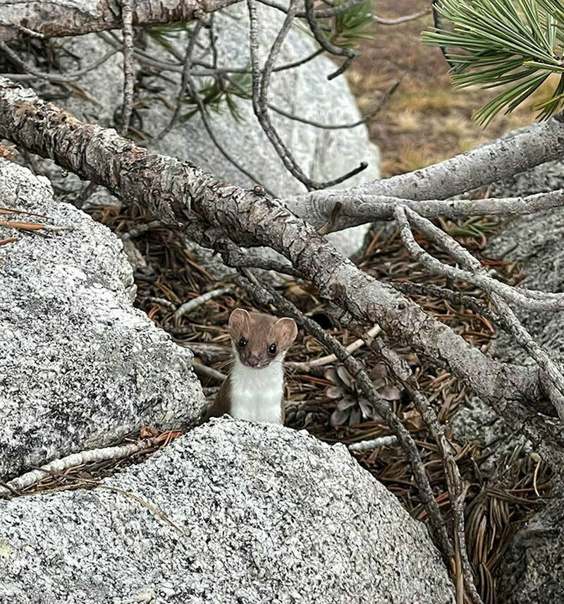Любопытный горностай, которого встретил пользователь сети во время похода