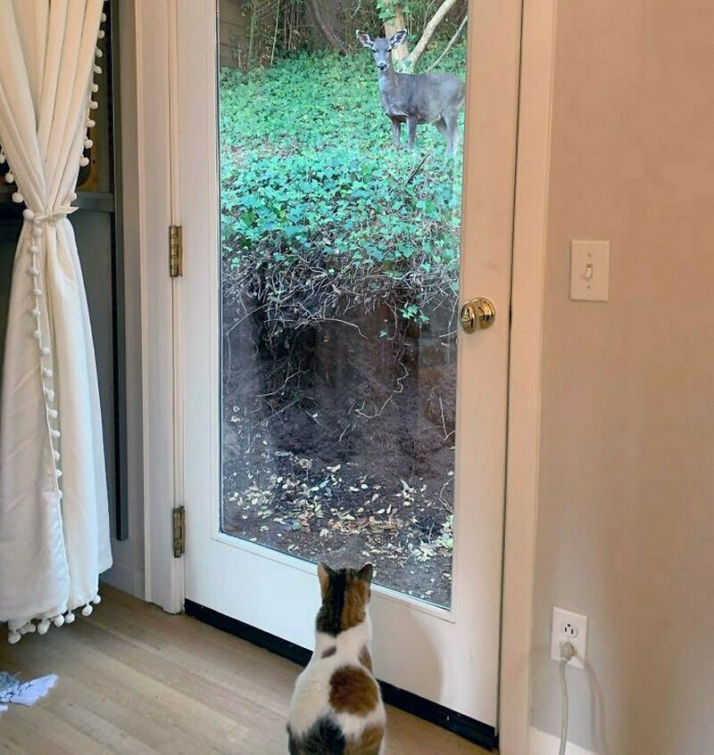 Мы встречаемся с дикой фауной ежедневно и обычно этого даже не замечаем: птицы на окне нашего дома, белки в местном парке или суслики, выпрашивающие угощение. Конечно, самые впечатляющие встречи — это встречи с обитателями лесов. Иногда лисы прогуливаются в населенных пунктах, лоси или олени выходят к дороге, порой встречаются людям и медведи. Кстати, мы рассказывали, где в России медведи по улицам ходят. Люди в разных уголках планеты периодически сталкиваются с енотами, с большими кошками, а иногда даже с ламантинами. Подобные встречи с дикими животными всегда застают врасплох и обескураживают. Именно такими неожиданными встречами поделились пользователи сети.