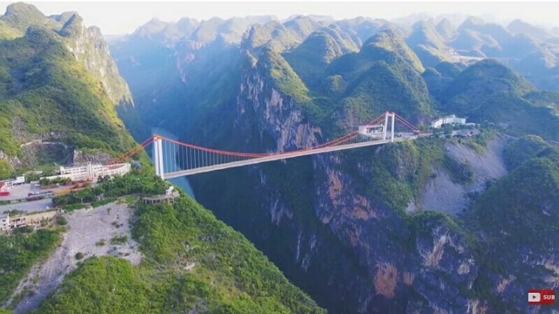 На видео показан один из мостов через реку Бэйпань, который с 2003 по 2005 годы считался самым высоким автомобильным мостом планеты. В наши дни этот мост находится на 11 месте по высоте, отчасти из-за того, что в Китае за 20 лет построили еще более высокие сооружения.