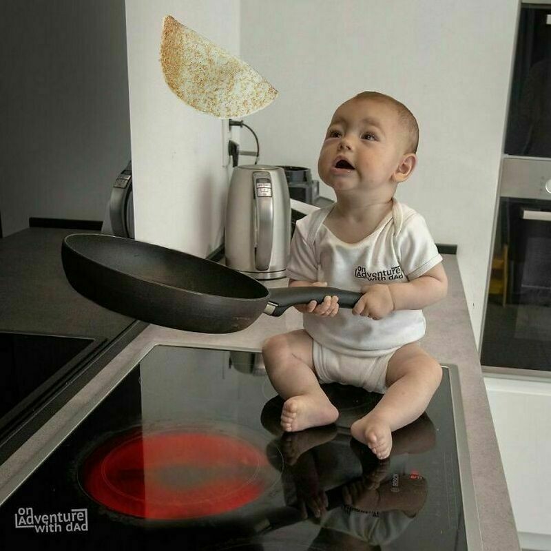 Остается надеяться, что у мамы Аликс и Астер (именно так зовут этих классных девчонок) нашлось в сумочке успокоительное. Не стоит переживать за малышек, все эти фотографии — фотошоп. Но с тех пор так и повелось: Кенни играет со своими дочками и устраивает им фотосессию, а затем обрабатывает снимки в фоторедакторе. У семьи Дойс скопилась целая коллекция смешных фото о том, как Аликс и Астер занимаются совсем не детскими делами. Заранее предупреждаем слишком тревожных родителей: вам лучше отойти от экранов.