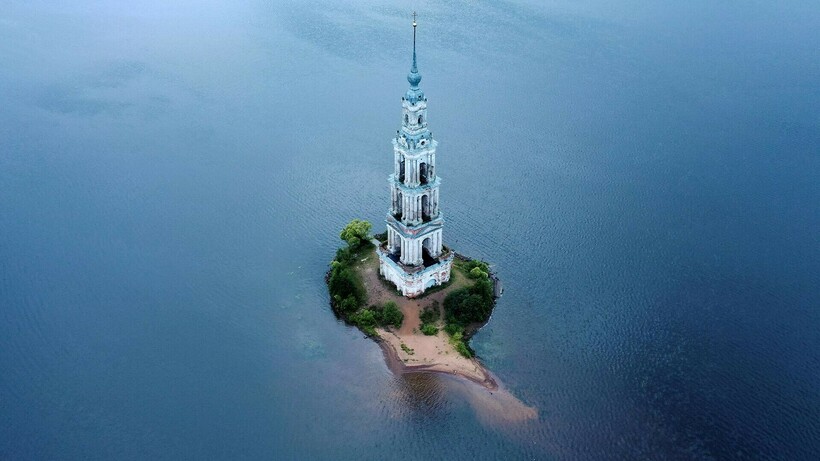 Колокольня, которая возвышается над водохранилищем, Калязин, Тверская область