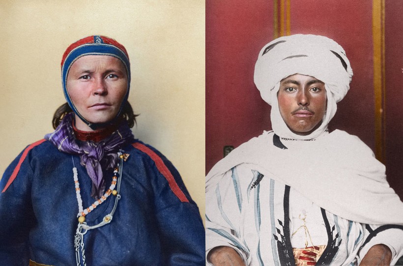 На фото слева: Лапландка из Финляндии. 1905 год. На фото справа: Алжирец. Примерно 1905–1914 годы
