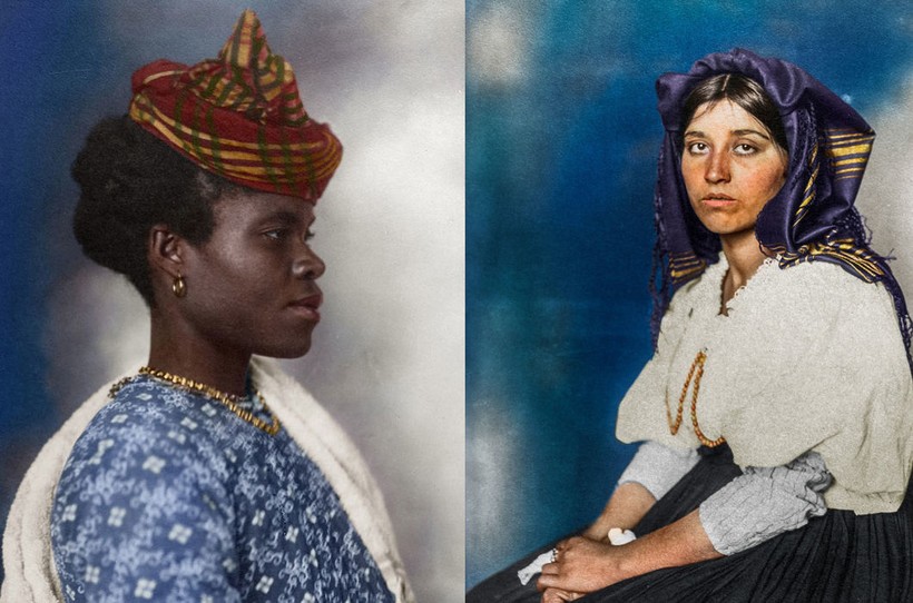 На фото слева: Женщина из Гваделупы (Карибский архипелаг). 1911 год. На фото справа: Итальянка. 1906 год