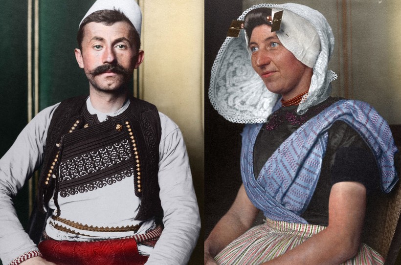 На фото слева: Албанский солдат. Примерно 1905–1914 годы. На фото справа: Голландка. Примерно 1905–1914 годы