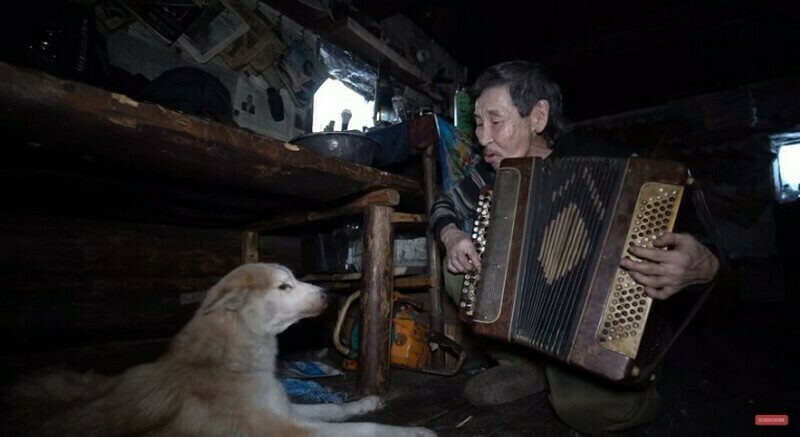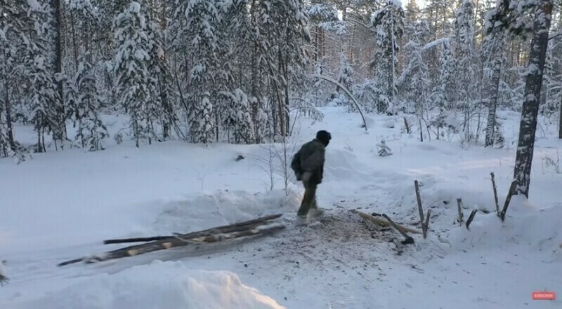 Самуил перебрался в лес больше 20 лет назад, после того как вся его семья погибла. Он сам построил дом из бревен, утеплил его паклей, а вместо окон использовал целлофан, который, честно сказать, не очень держит температуру. Жить отшельником в Якутии непросто, особенно в холодное время года. Зимой вся его жизнь выглядит как постоянная борьба за тепло. С самого утра Самуил заготавливает дрова, которыми отапливает дом круглые сутки. Такая физическая работа — лучший способ согреться в морозы. Другой физический труд, которым Самуил занят практически ежедневно, — это заготовка воды. Отшельник набирает ее в ближайшем озере: зимой от откалывает лед, а потом растапливает его.