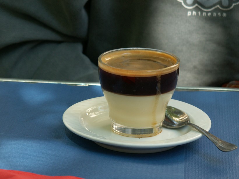 Испанский кофе подойдет тем, кто предпочитает послаще. Напиток состоит из равных частей черного кофе и сгущенного молоко.