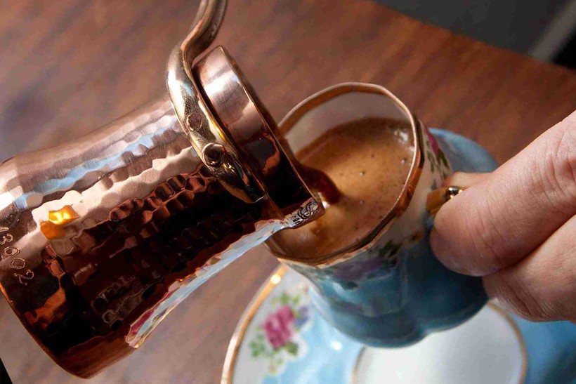 Турки очень мелко мелют обжаренные кофейные зерна, после чего варят их в джезве на медленном огне. Кофе по-турецки никогда не пьют сразу после размешивания, поскольку в нем слишком много гущи — необходимо подождать, когда она осядет на дно чашки.