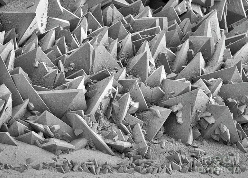 Камень, извлеченный из почки человека, под микроскопом
