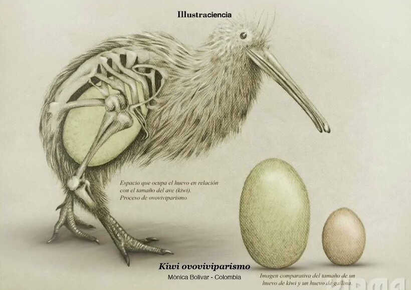 Еще одна специфическая черта киви — это громадные яйца. Самки массой 2-3 кг вынашивают полукилограммовые яйца. Только представьте себе, если бы у курицы было яйцо размером ¼ от нее самой.