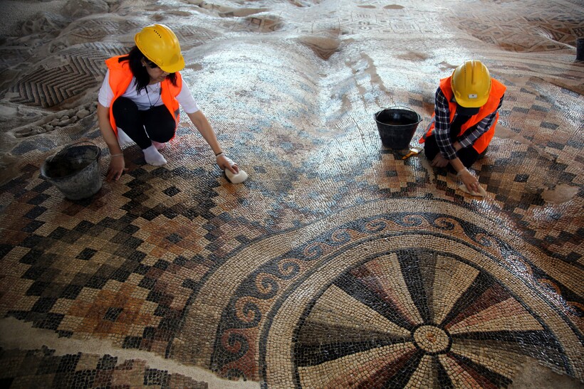 Мозаику нашли во время строительства отеля в турецком городе Антакья. В городе есть музей, где выставлены мозаичные экспонаты разных эпох, найденные во время раскопок. Обычно такие фрагменты срезают вместе с полом и перевозят в музей, где они потом хранятся в особых условиях, с определенной температурой и влажностью. Но трогать 850-метровое полотно было бы преступлением, поэтому его решили оставить так, как есть. В итоге вокруг мозаики организовали зоны для посетителей, чтобы они могли осматривать узоры.