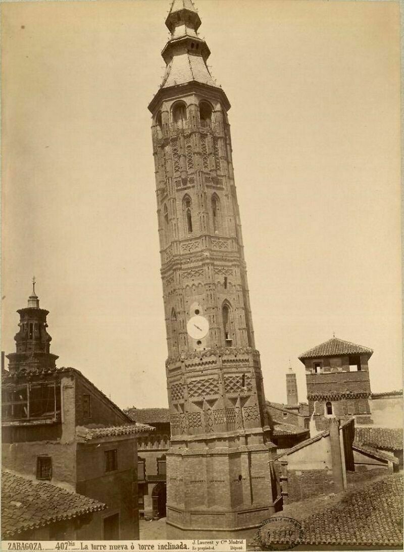 Падающая башня в испанской Сарагосе: ее снесли в 1892 году, так как она очень сильно наклонилась