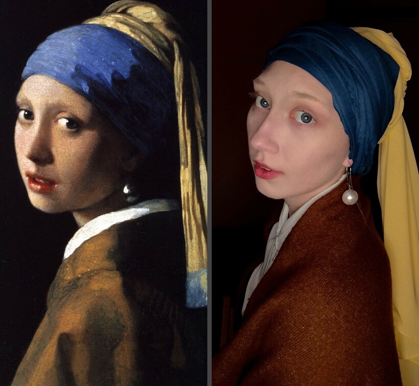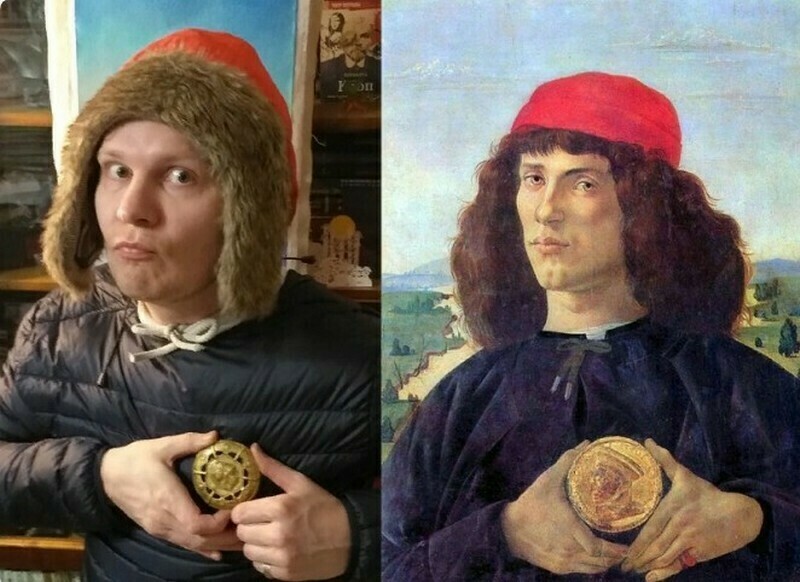 В эпоху пандемии появилось очень много фотопроектов, на которых люди воссоздают работы классиков у себя дома (об одном из таких проектов мы рассказывали вот тут). Однако это увлечение было популярно задолго до карантина. Группа «Сфоткай типа Рембрандт» еще в 2017 году объединила тысячи людей, любящих искусство. Пользователи «ВКонтакте» выкладывают фотографии, на которых они воссоздают известные картины и скульптуры. Здесь вы найдете косплей на любой вкус: кто-то воссоздает шедевры искусства детально и скрупулёзно, другие подходят к работам с юмором.