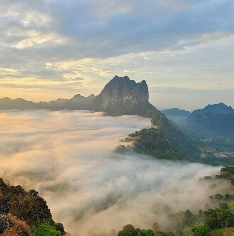 Море из облаков во время сезона дождей в Мьянме