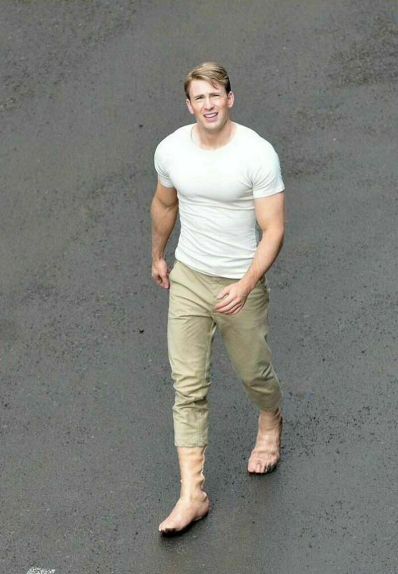 Капитан Америка в резиновых ботинках, которые выглядят как голые ноги