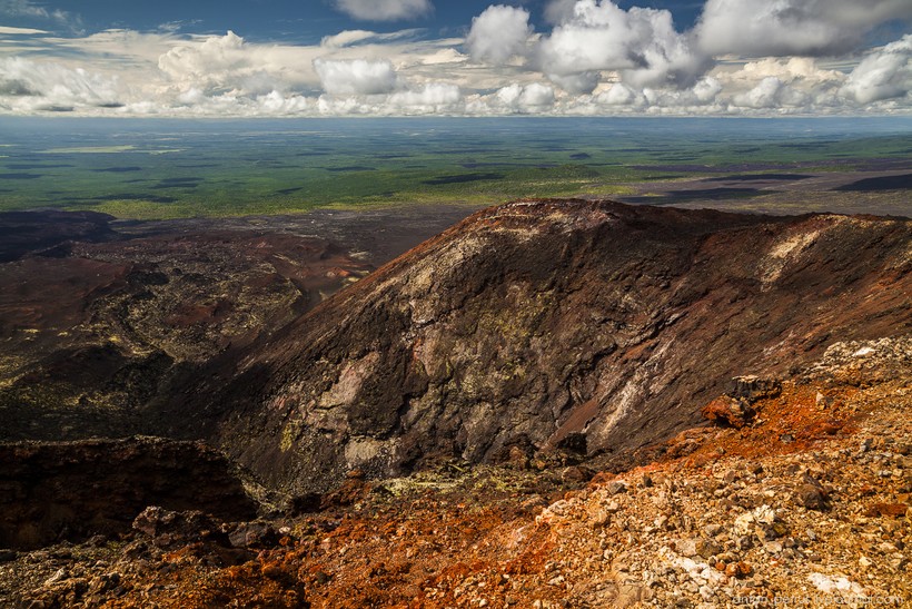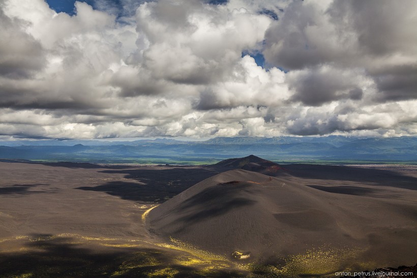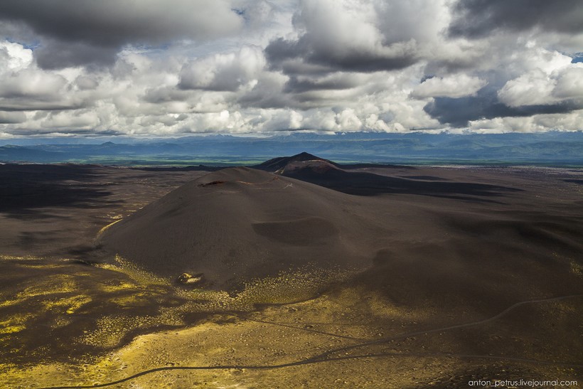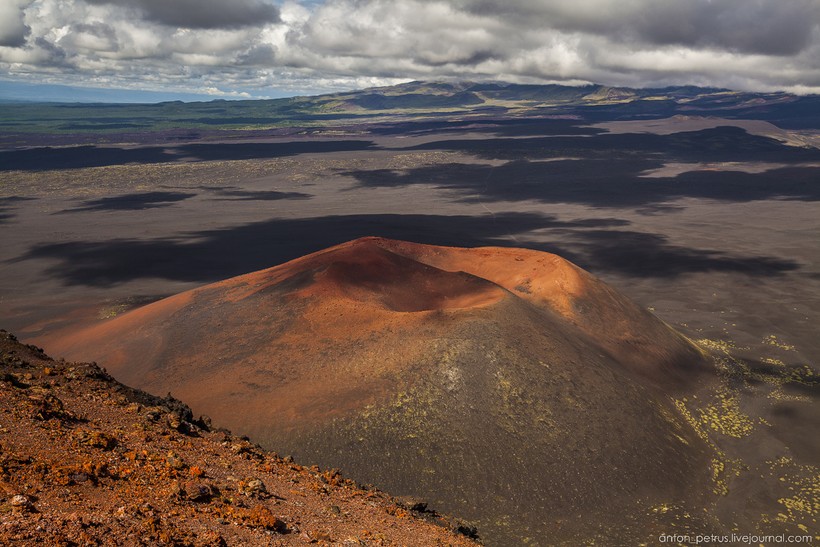 Дальше начался чистый космос — шлаковые конусы в зоне Большого Толбачинского трещинного извержения. Я не был в Исландии, но пейзаж чем-то напомнил картинки из сети.