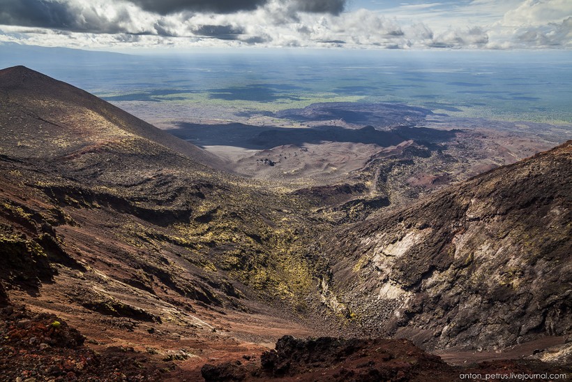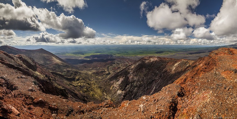 Панорама Северного прорыва. По центру видно лавовую реку, ушедшую вниз по склону.