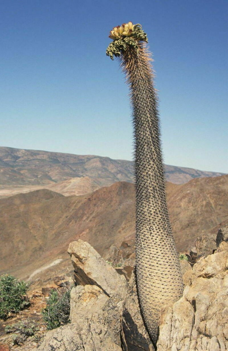 Вдоль побережья Атлантики встречается еще одно странное растение — вельвичия. Оно больше похоже на цветок, однако это растение может жить сотни лет. Например, одному из старейших растений полторы тысячи лет.