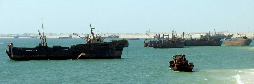 Так как у Наудибу было отличное расположение, именно здесь появился крупнейший порт, откуда железная руда отправлялась по миру. Добытые в глубине страны медь и железо везут именно сюда, здесь ее перераспределяют, перерабатывают и грузят на корабли, отправляя по миру. Везут ее по единственной в стране железной дороге: мы рассказывали, как выглядит эта поездка. Но четыре десятилетия назад полуостров стал не только отправной точкой, но и последним пристанищем для старых кораблей.