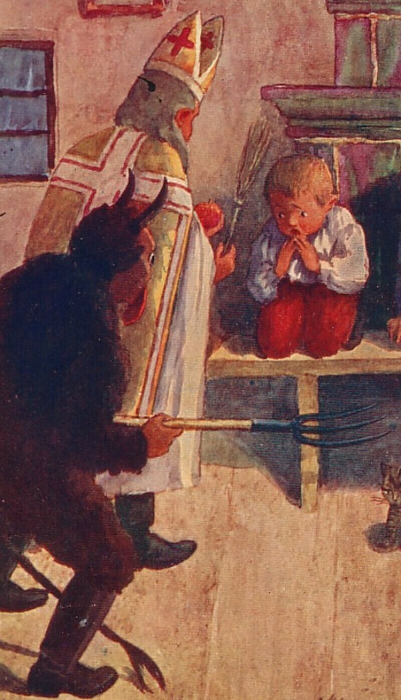 Еще в XIX веке в Австрии были популярны открытки с Крампусом в главной роли. На них монстр делал что-нибудь нехорошее: стоял над детьми с розгами или вообще запихивал их в свой мешок. Рисунок обычно сопровождал шуточный текст. Но в 1930-х годах австрийское правительство запретило праздники с участием Крампуса, и рекомендовало не пугать им детей. Но в деревнях традиция продолжала жить.