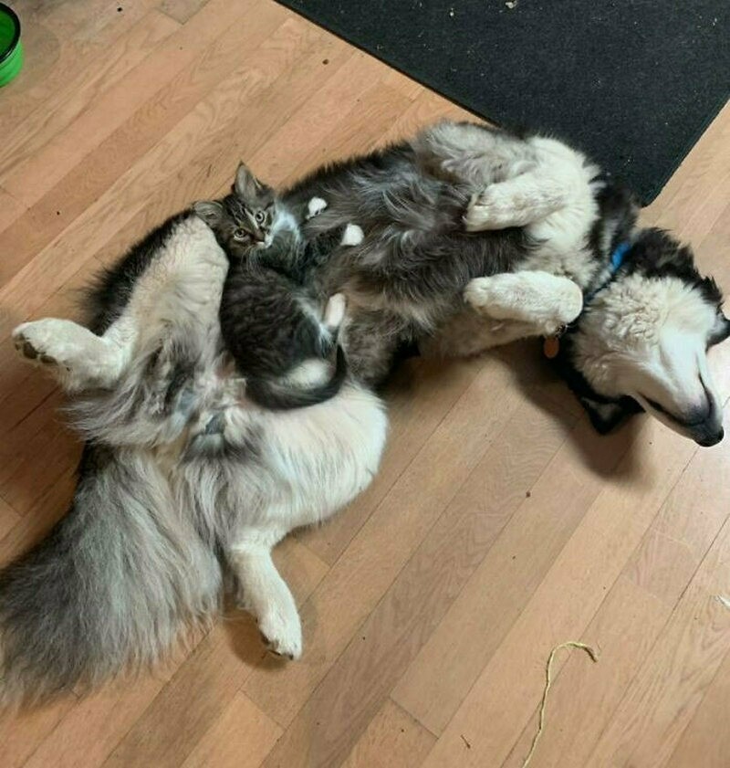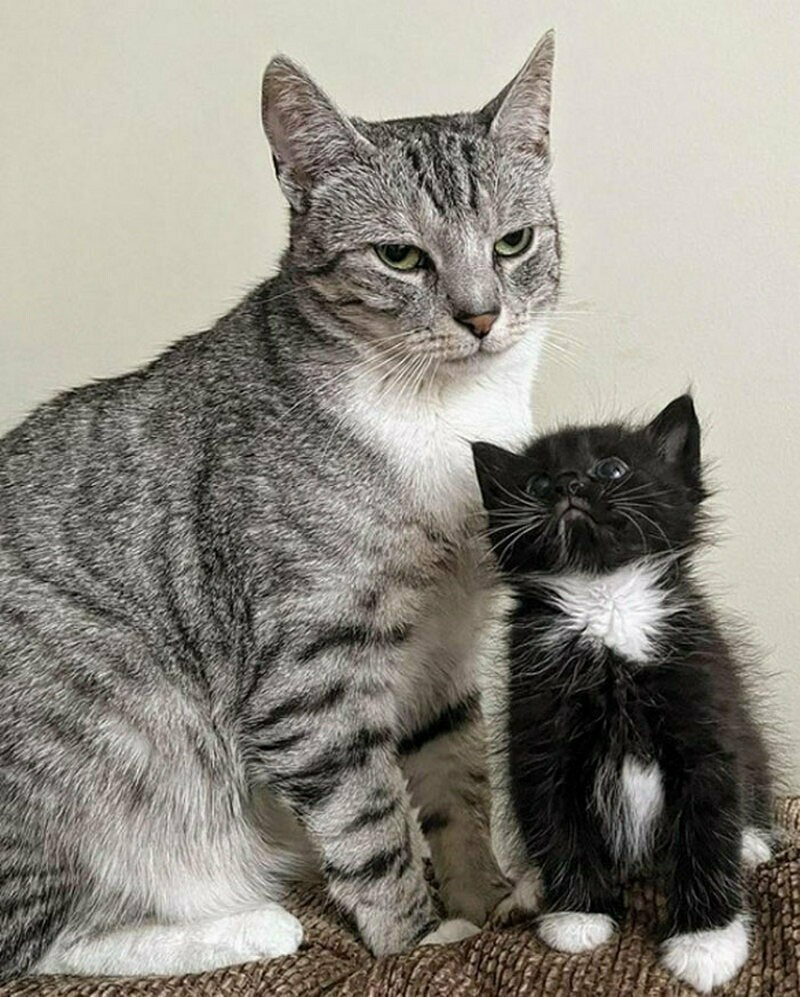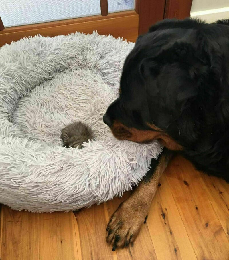 Ротвейлер уступил место крошечному котенку, которого недавно подобрали на улице