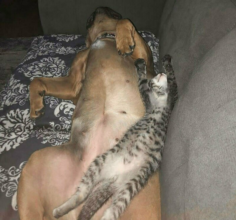Посмотрите еще больше очаровательных примеров дружбы между кошками и собаками.