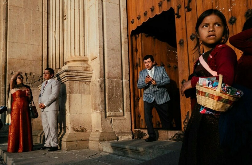Джонатана Джасберга считают фотографом-бродягой, который путешествует по миру. Он стремится запечатлеть повседневную жизнь, и этот уличный снимок особенно удался. На фото девочка торгует конфетами рядом с исторической церковью, где играют роскошную свадьбу.