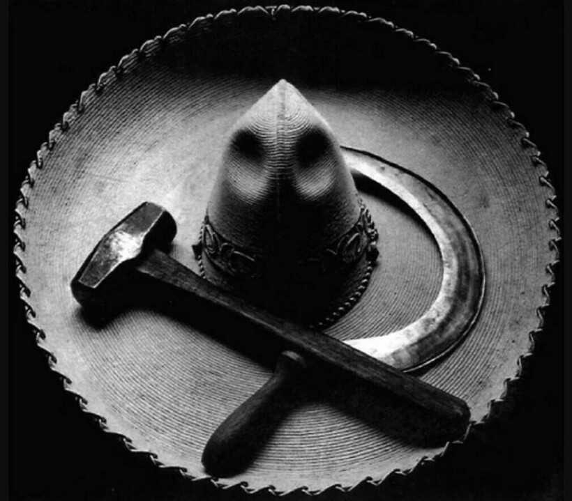 Тина Модотти была политической активисткой, светской львицей, которая дружила с Фридой. На этом снимке запечатлены революционные идеалы — это серп и молот. Только Модотти добавила немного мексиканского колорита.