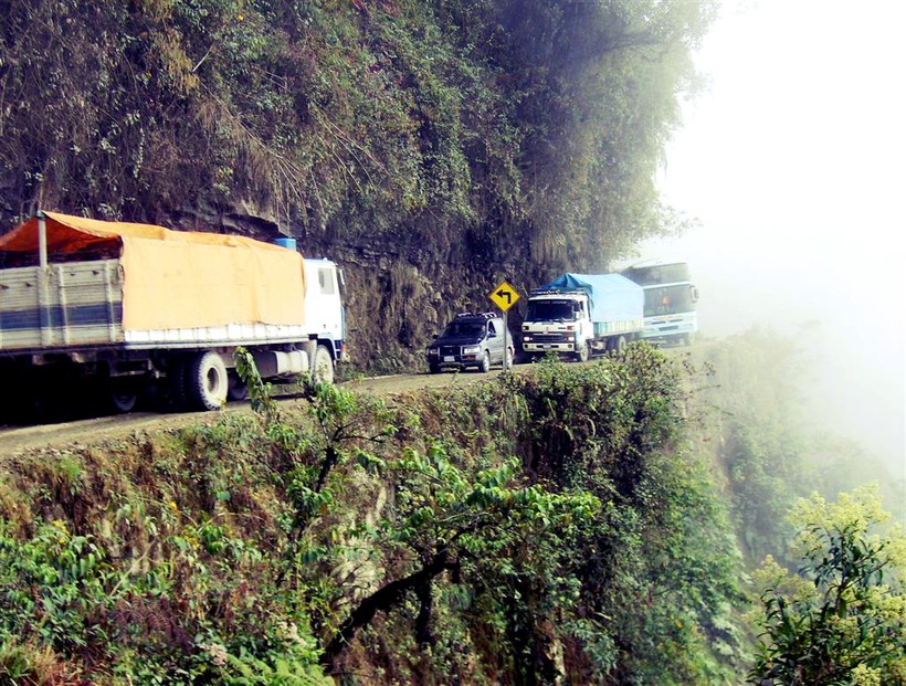 На этой дороге даже действует левостороннее движение, в отличие от других трасс Боливии. Это позволяет улучшить видимость.