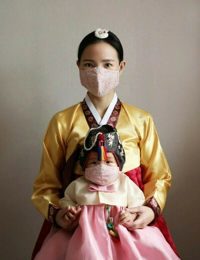 Мать и дочь во время праздника Пэк иль, который дословно переводится как «сто дней». Этот праздник отмечают в 100-й день с момента рождения ребенка. Он появился в XVIII веке, когда в Корее был очень высокий уровень младенческой смертности. В этом фото — культурное наследие Кореи, которое до сих пор поддерживают местные жители. Они не отошли от своих традиций даже в пандемию.