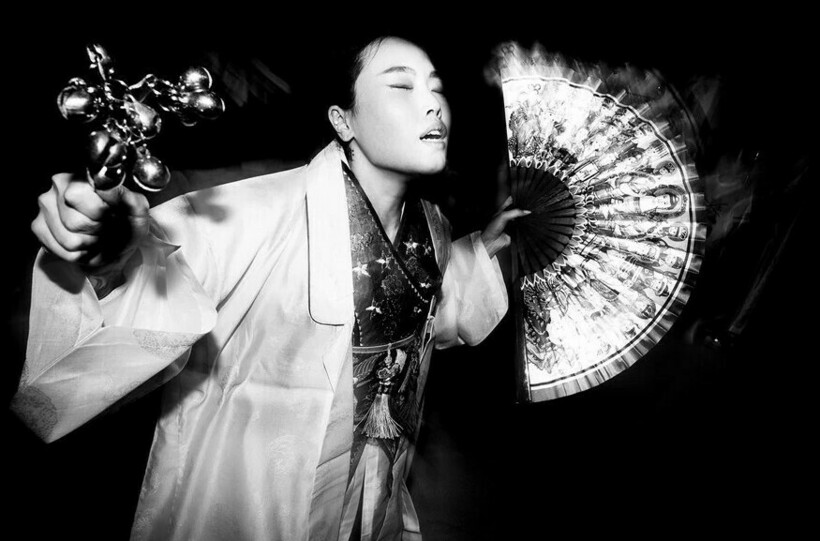 В Южной Корее, несмотря на ультрасовременность, все еще сильны языческие верования, а также есть духовные шаманские практики. На снимке молодая шаманка вызывает духов во время священного ритуала.