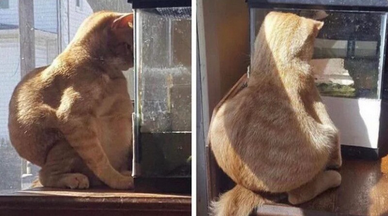 Этот кот часами наблюдает за ящерицей